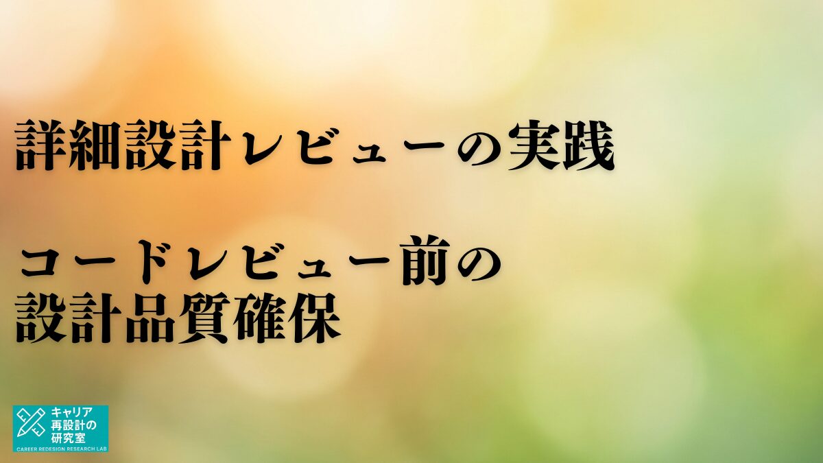 この記事では、詳細設計レビューの実践方法を解説し、コードレビュー前に設計品質を確保する具体的な手法を身につけてもらいます。これができれば、あなたは「ただコードを書く人」から「設計できる人」へと進化します。