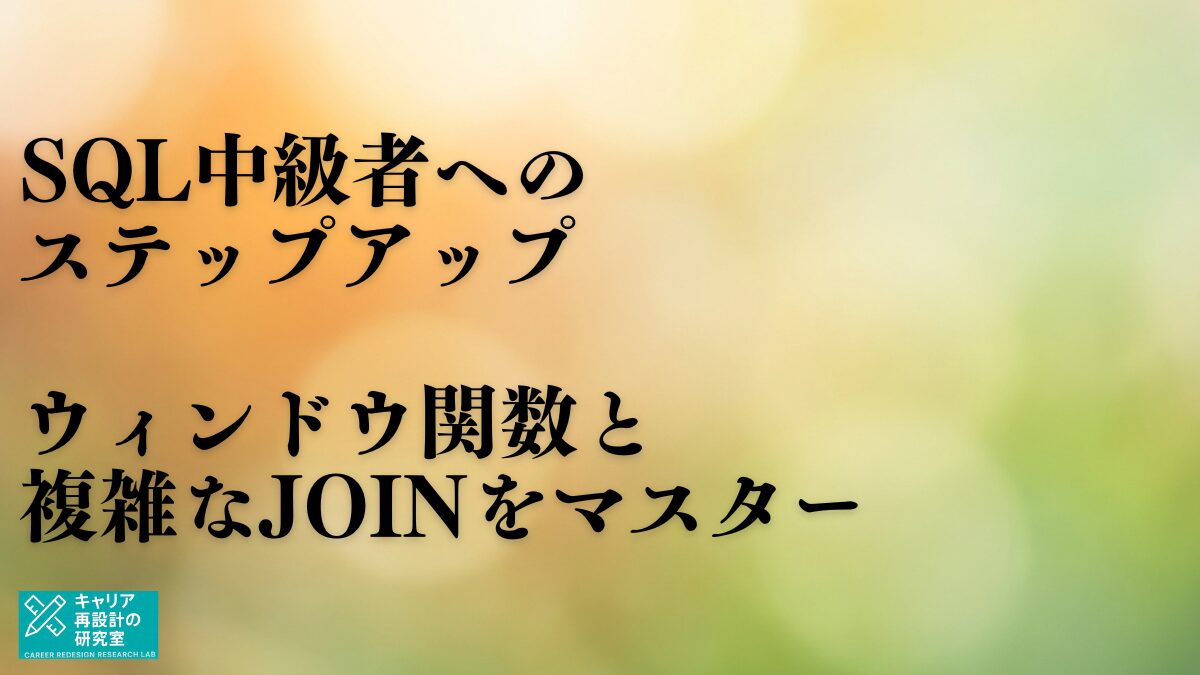 ウィンドウ関数を理解すれば、「集計しながら明細も見たい」というビジネス要件に即座に応えられます。最初の1週間で、基本的なウィンドウ関数を使えるようになりましょう。